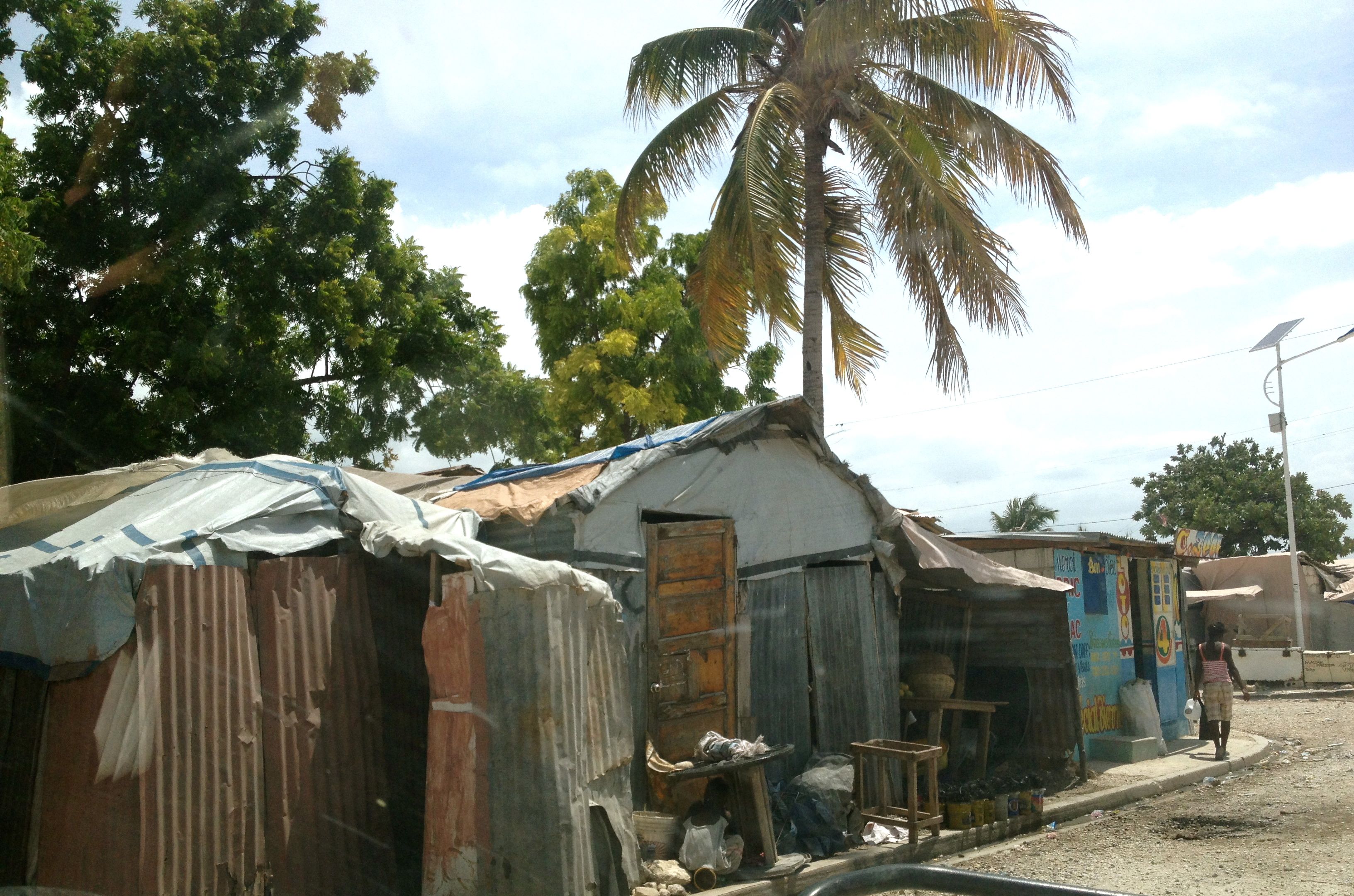 And when I’m not girding myself from being tossed like a ragdoll and can look out the windows, I see that other part of Port-au-Prince, the part you see on the nightly news. The tent camps that arose after the Jan. 12, 2010 earthquake are being reduced, but the residents haven’t moved up far. Many thousands now inhabit other camps in ragged homes, poorly built “stick” homes covered with rusted corrugated tin and old tarps.